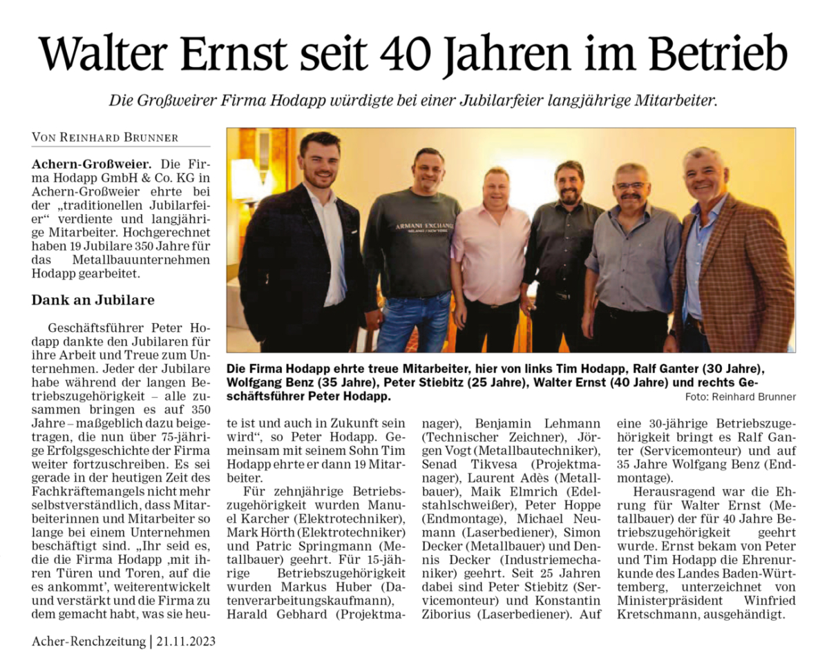 Die Großweirer Firma Hodapp würdigte bei einer Jubilarfeier langjährige Mitarbeiter.